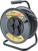 Удлинитель на катушке, 4 розетки, длина 20 м, 16А, КГ 3x2,5м?, IP44, металл, пластик, резина, чёрный