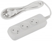 Удлинитель, 3 розетки, длина 1,5 м, 10А, ПВС 2х0,75 мм², б/з, IP20, термопласт, белый, У3