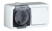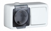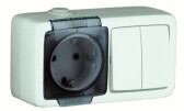 Блок выключатель 1 клавишный+розетка 2Р+Е накладной 11-7401-03 серый IP54 ЭРА