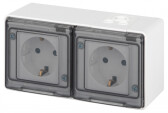Розетка двойная 2х2P+E с крышкой накладная серый IP54 IEK Форс