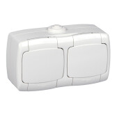 РА16-242 Розетка открытой установки, двухместная, со шторками, брызгозащищенная, цвет белый