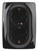 12-2108-06 ЭРА Розетка 2X2P+E Schuko со шторками, 16A-250В, IP20, Эра12, чёрный (10/100/1600)