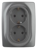 РОЗЕТКА двойная с з/к, в сборе, ГРАФИТ