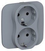 12-2106-03 ЭРА Розетка 2X2P+E Schuko, 16A-250В, IP20, Эра12, алюминий (10/100/1600)