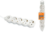 Сетевой фильтр, 5 розеток, длина 5 м, 3х1мм², 16А, с/з, IP20, термопласт, белый, СФ-05К-выкл.