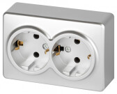 РА16-153-01 Розетка открытой установки, двухместная, с заземляющим контактом, с изолирующей пластиной, цвет слоновая кость