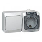 Блок выключатель 1 клавишный+розетка 2Р+Е накладной 11-7401-03 серый IP54 ЭРА