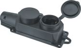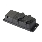 Колодка розеточная, 2 розетки, 16А, с/з, IP54, каучук, чёрная, с защитными крышками
