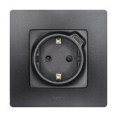 ATLASDESIGN РОЗЕТКА с заземлением со шторками с крышкой,16А,IP20, мех.,быстрозажим. клем., КАРБОН
