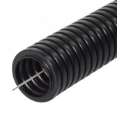 Труба ПВХ гибкая гофрированная д.32 мм, лёгкая, с протяжкой, цвет чёрный, (Бухта 25м)