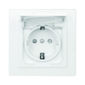 GLOSSA РОЗЕТКА с зазем. со шт. с прозрач. крышкой, 16А, IP44, в сборе, быстрозажим. клем., БЕЛЫЙ