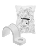Крепеж-скоба пластиковая односторонняя для прямого монтажа атмосферостойкая белая в п/э d20 мм