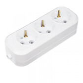 Колодка розеточная, 3 розетки, 16А, с/з, IP20, пластик, белая