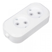 Колодка розеточная, 2 розетки, 10А, с/з, IP20, пластик, белая, KX-2e