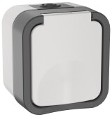 Розетка 2P+E с крышкой накладная серый IP54 AQUATIC РСш12-2-А