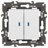 Выключатель ЭРА Elegance 14-1105-01М двойной с подсветкой, 10АХ-250В, белый матовый