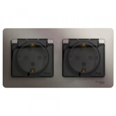 Розетка 2х2P+E (2 поста) со шторками с крышкой IP44 титан Glossa