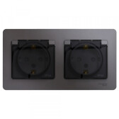 Механизм розетки двойной, 16А, IP44, с заземлением, со шторками, с рамкой, с крышками, графит Эпика EKF