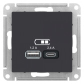 Розетка USB 2 порта A + C 5В/2,4А 2х5В/1,2А карбон AtlasDesign