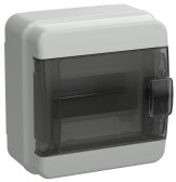 Щиток настенный с дверцей 8 мод.,IP65, серый, с клеммным блоком 63А