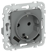 Розетка 2P+E с USB A+C РСЮшс11-0-ФлА алюминий FLITE