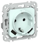 Розетка 2P+E с 2хUSB 3,1А РСЮша11-0-ФлХЛ холодный лед FLITE