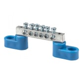 Шина "0" N (6x9мм) 6 отв. цинк 2 синих угловых изолятора EKF