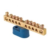 Шина "0" N (6х9мм) 10 отверстий латунь 2 синих угловых изолятора EKF PROxima
