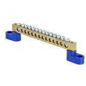Шина "0" N (6х9мм) 16 отверстий латунь 2 синих угловых изолятора EKF PROxima