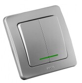 ВС10-352-06 Выключатель скрытой установки, двухклавишный, с индикацией, цвет серебро