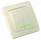ВС10-352-01 Выключатель скрытой установки, двухклавишный, с индикацией, цвет слоновая кость