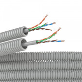 Электротруба ПВХ гибкая гофрированная д. 16 мм, цвет серый, с кабелем витая пара 5EU/UTP нг(А)-HF, 25 м