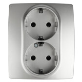 РС16-382-06 Розетка скрытой установки, двухместная, с заземляющим контактом, со шторками, цвет серебро