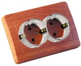 РС16-382-02 Розетка скрытой установки, двухместная, с заземляющим контактом, со шторками, цвет сосна