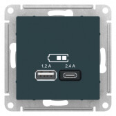 Розетка USB 2 порта A + C 5В/2,4А 2х5В/1,2А изумруд AtlasDesign