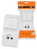 GLOSSA БЛОК: РОЗЕТКА + 2-клавишный ВЫКЛЮЧАТЕЛЬ БЕЛЫЙ