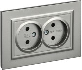 Розетка 2*2P с защитными шторками 10А в сборе РСш12-2-БрС сталь BRITE