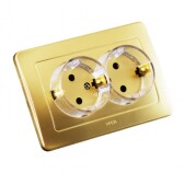 РС16-382-07 Розетка скрытой установки, двухместная, с заземляющим контактом, со шторками, цвет золото