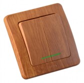 ВС10-352-02 Выключатель скрытой установки, двухклавишный, с индикацией, цвет сосна
