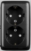 РА16-154-08 Розетка открытой установки, двухместная, с заземляющим контактом, со шторками, с изолирующей пластиной, цвет черный
