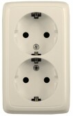 РА16-153-01 Розетка открытой установки, двухместная, с заземляющим контактом, с изолирующей пластиной, цвет слоновая кость
