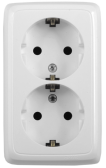 РА16-155 Розетка открытой установки, двухместная, с заземляющим контактом, с монтажной пластиной, цвет белый