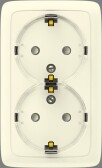 РА16-152-01 Розетка открытой установки, двухместная, с заземляющим контактом, со шторками, цвет слоновая кость
