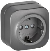 РА16-114-06 Розетка открытой установки, одноместная, с заземляющим контактом, со шторкой, с изолирующй пластиной, цвет серебро