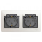 Розетка 2X2P+Е 16А со шторками серый IP44 Quteo