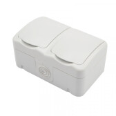 РА16-251 Розетка открытой установки, двухместная, с заземляющим контактом, брызгозащищенная, цвет белая