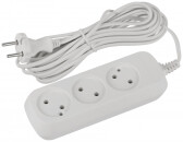 Удлинитель,3розетки, длина 3 м, 10А, ШВВП 2х1 мм?, б/з, IP20, термопласт, белый, UX-3-3m(new)