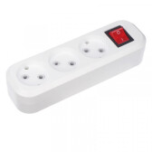 Колодка розеточная, 3 розетки, 16А, с/з, IP20, пластик, белая, с выключателем, K-3es
