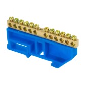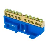 Шина "0" N (6х9мм) 10 отверстий латунь синий изолятор тип "Стойка" на DIN-рейку EKF PROxima