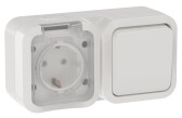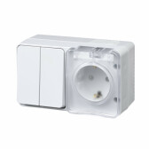 Блок выключатель 2 клавишный+розетка 2Р+Е накладной IP54 11-7402-01 белый ЭРА